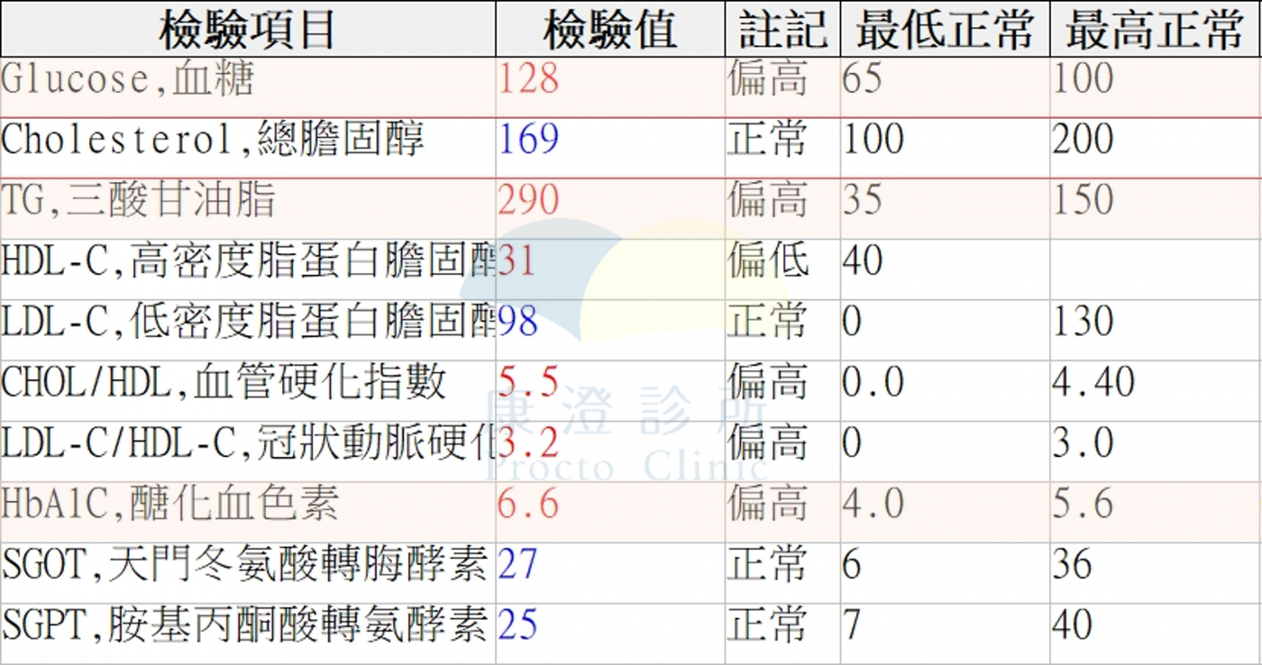 ▲治療前評估發現血脂偏高,血糖也是糖尿病的狀態。