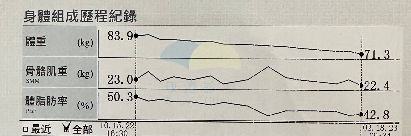 做完胃肉毒四個月後,小雯減下12.6公斤的體重及7.5%的脂肪,足足卸下15%的負擔!