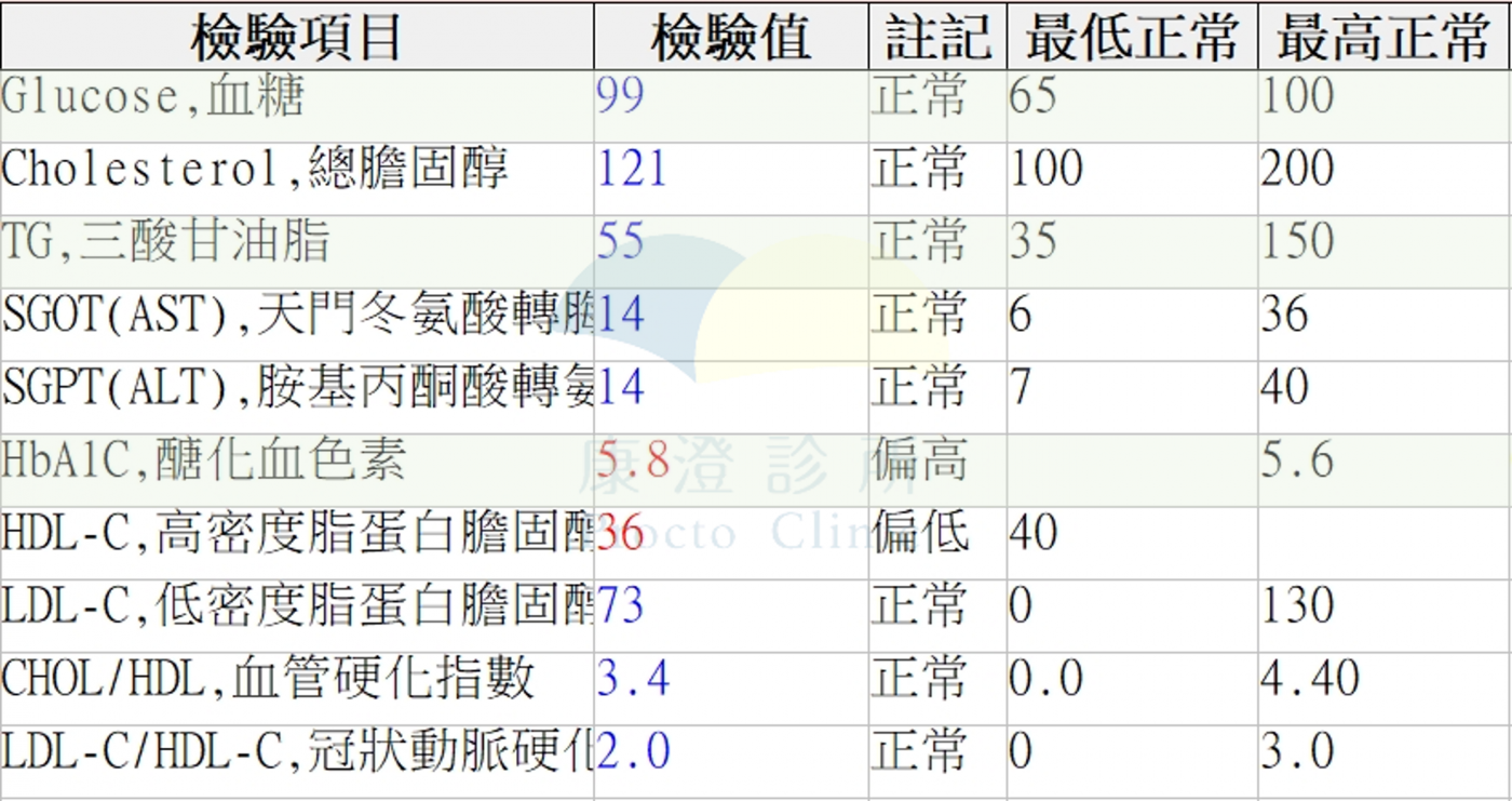重新驗血發現血糖狀況穩定許多,血脂也下降了。
