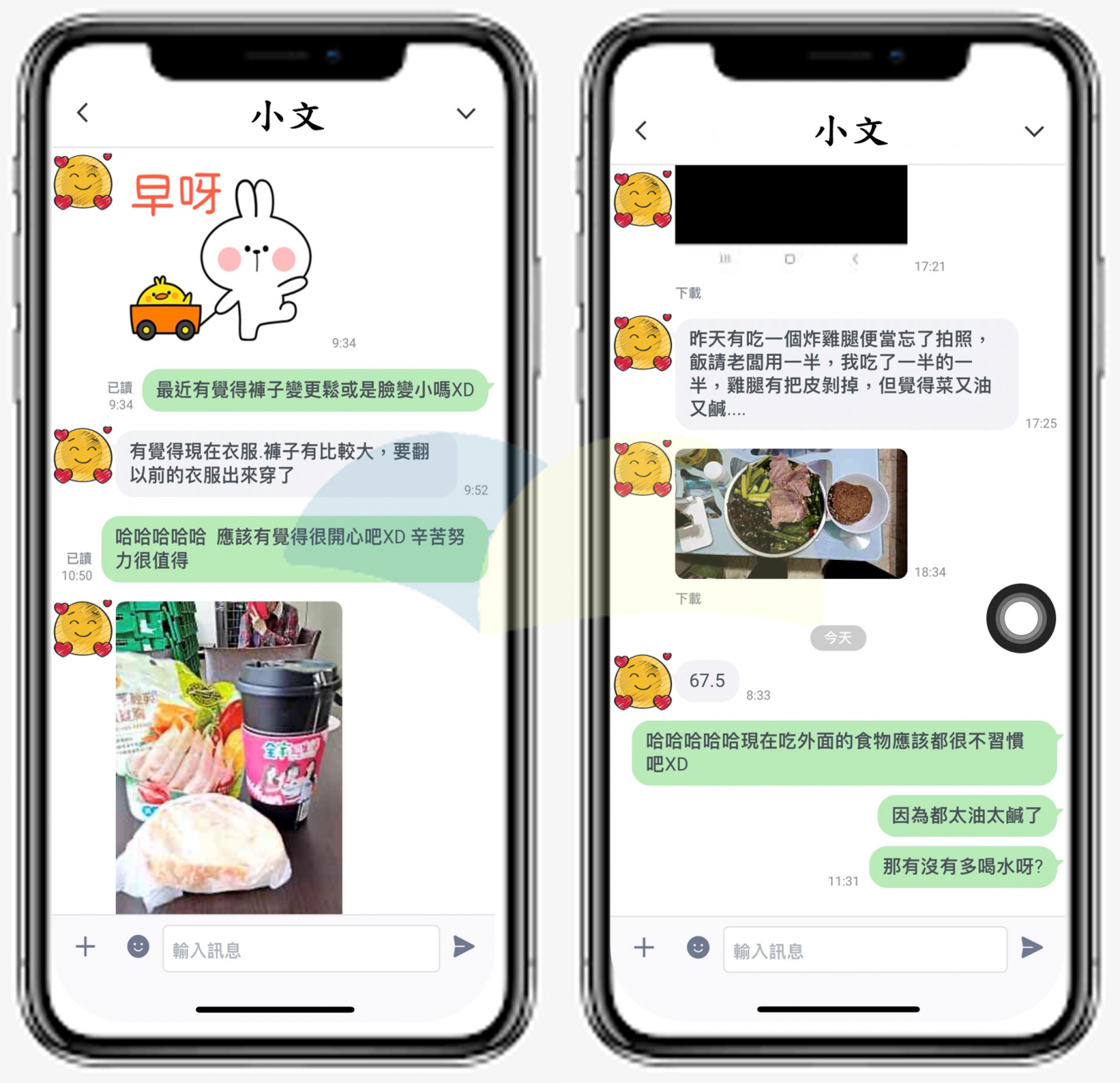 ▲治療後營養師與小雯持續追蹤每日飲食狀況。注射後第二週發覺自己一吃就容易飽,也不會一直想吃東西,順利解決情緒性進食的問題。