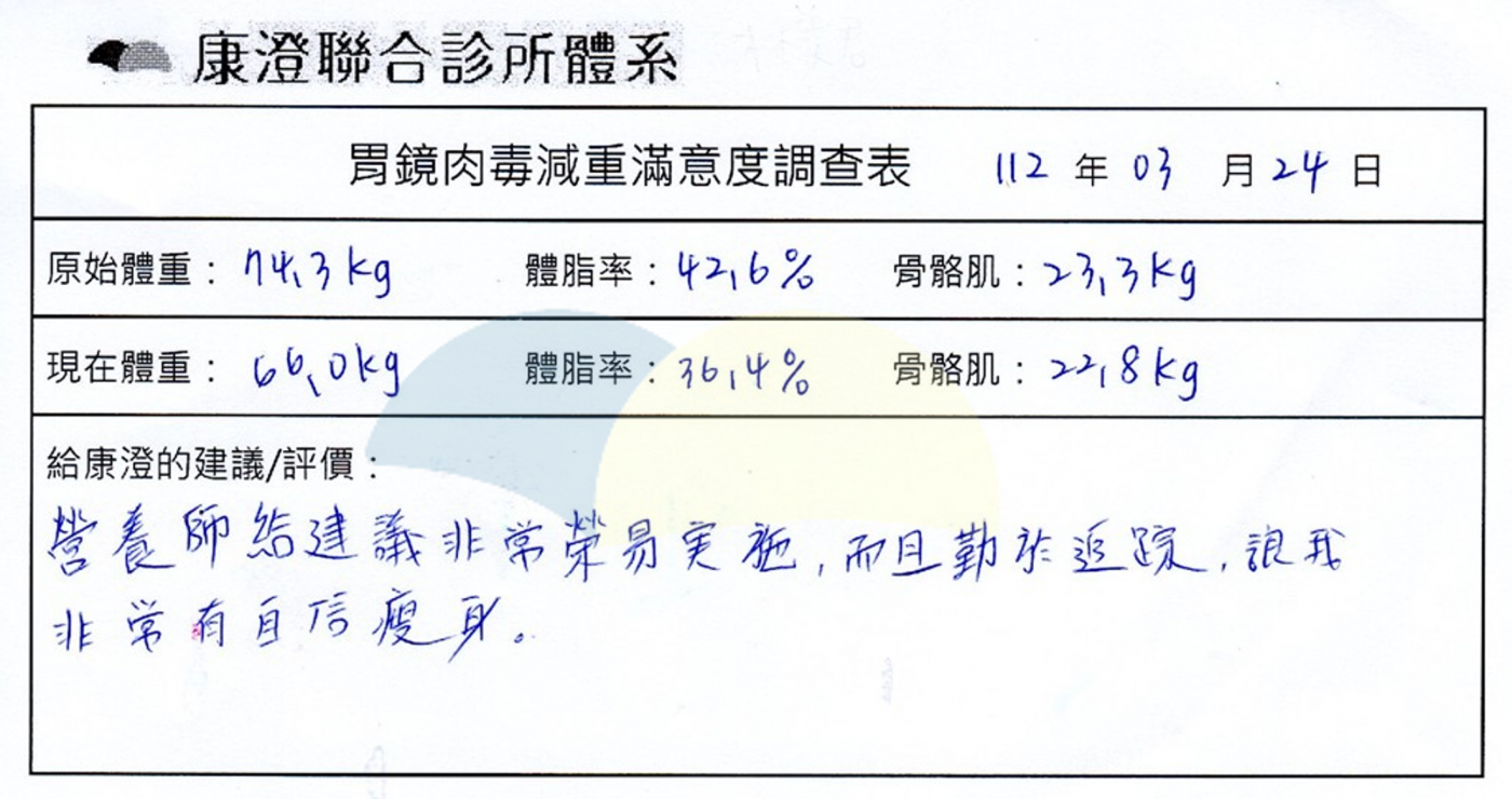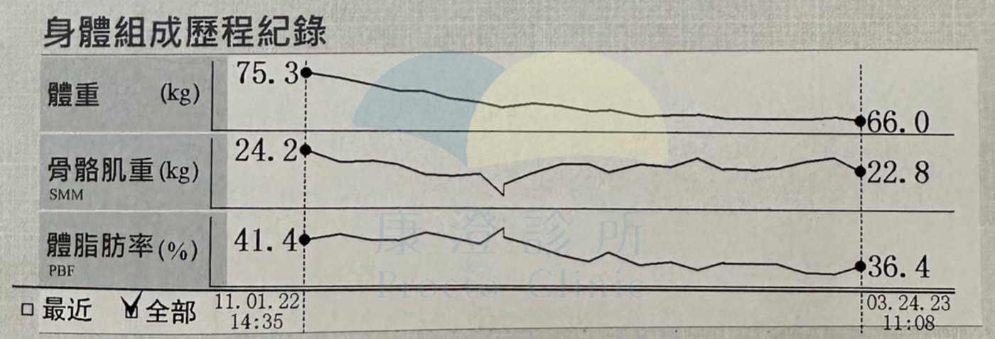 ▲小慕打完胃肉毒之後,四個月的時間成功減下9.3公斤的體重及5%脂肪!