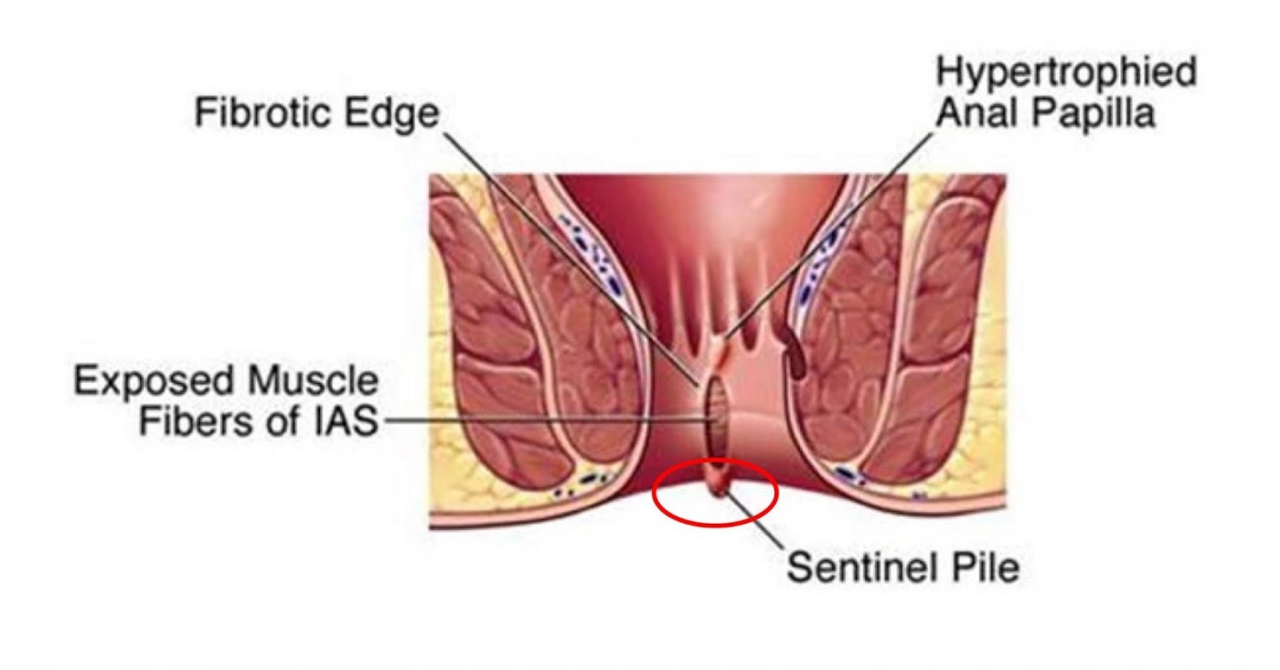 看到哨兵痔通常暗示裡面有肛裂,除非已經纖維化,不然大多數的哨兵痔不會痛,痛的是裡面的肛裂,只是兩者距離太近,很容易誤把張飛當岳飛。